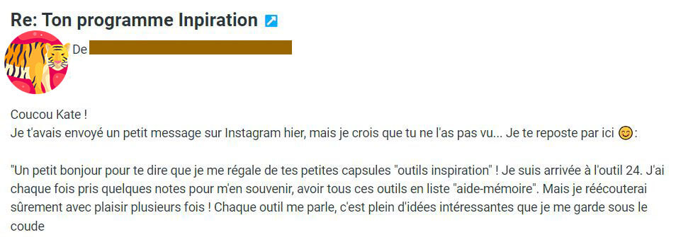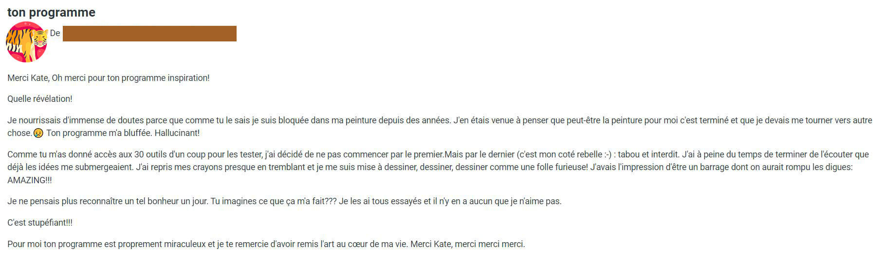 • support mail gratuit à volonté (avant, pendant, après le programme ==)  chaque fois que tu en ressens l'envie, tu m'écris!)